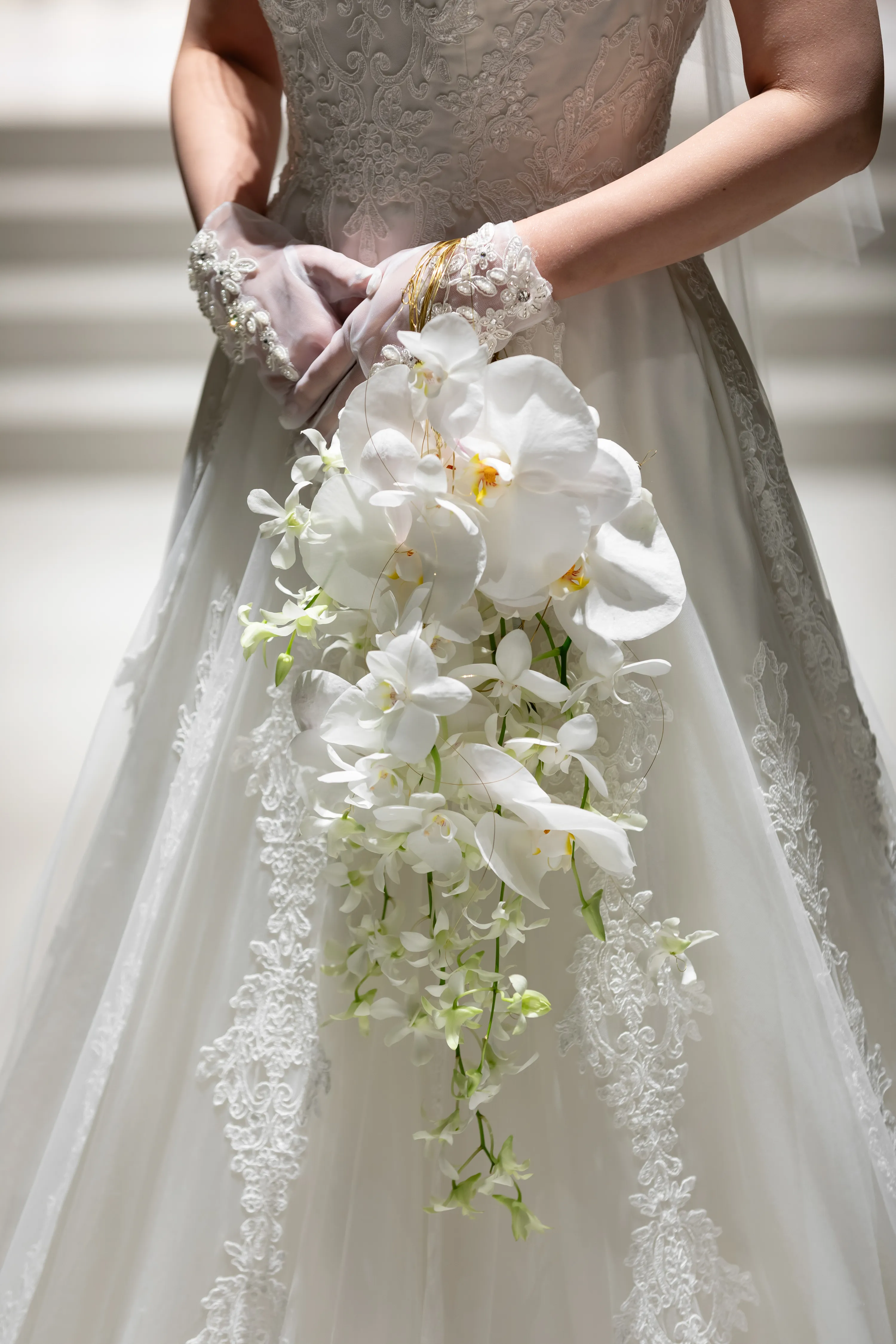 ブーケは手に持つタイプではなく手首に通すリストタイプのブーケで他の人とは被らない洗練されたデザインを選ばれました